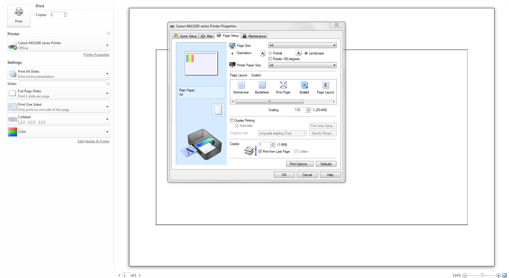In response to your questions concerning printing 16:9 on A4 format, we will show you how to optimize your settings for 16:9 slides.