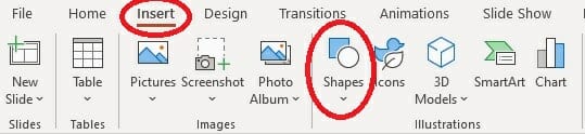 - Go to Insert > Shapes to draw a rectangle.