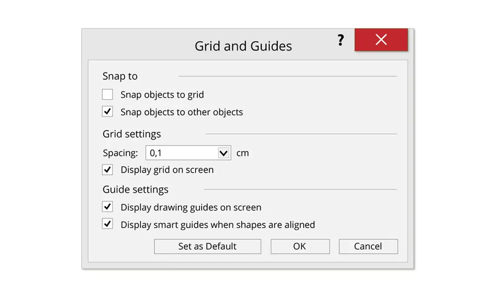 - To activate smart guides, check the Display smart guides when shapes are aligned option in the Grid and Guides dialog box.